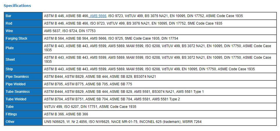 TAIXIN Alloy 625 (UNS N06625) is available in Round Bar, Flat Bar, Extruded section, Pipe, Tube, Plate, Sheet, Strip, Plate, Hexagon, Forging Stock, Extruded Section and Wire. View Stock List, Plate Stock List or contact Sales for further availability.