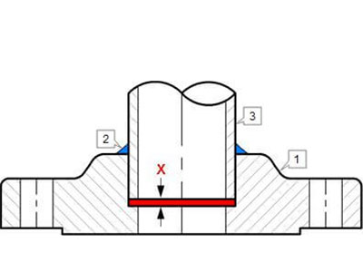 1. Weld Neck Flange 2. Butt Weld 3. Pipe Or Fitting | 1. Slip On Flange 2. Filled Weld Outside 3. Filled Weld Inside 4. Pipe | 1. Socket Weld Flange 2. Filled Weld 3. Pipe X = Expansion Gap |